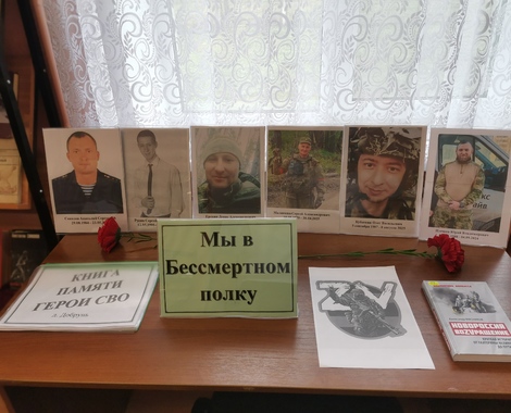 Добрунская поселенческая библиотека подготовила открытую полку «Мы в Бессмертном полку» посвящённую погибшим участникам СВО. Короткие биографии с описанием боевого пути, наградами. Она позволит читателям поближе познакомиться с воинами-земляками, которые мужественно встали на защиту не только Донбасса, но и всей нашей Родины, узнать об их боевых подвигах. Современные герои станут ярким примером для подрастающего поколения.